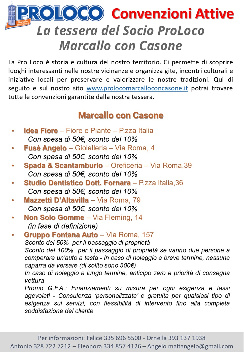 Tutti i possessori della tessera associativa Pro Loco in corso di validità e tutti coloro che vorranno associarsi (vedi nota in calce) avranno la possibilità di usufruire dello SCONTO (in fase di definizione - a breve informazioni dettagliate)